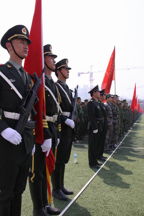 上午10時(shí),點(diǎn)驗(yàn)大會(huì)在嘹亮的軍歌聲中拉開序幕。預(yù)備役官兵軍容嚴(yán)整,雄姿勃發(fā),精神抖擻,士氣高昂,充分展示了當(dāng)代預(yù)備役軍人的良好精神風(fēng)貌,展現(xiàn)了部隊(duì)良好的軍政素質(zhì)和優(yōu)良的戰(zhàn)斗作風(fēng)。3名儀仗隊(duì)員護(hù)衛(wèi)著軍旗,邁著矯健的步伐從主席臺(tái)南側(cè)走到隊(duì)列北側(cè)。1500余人的預(yù)備役軍人身著整齊的軍裝,按照各自編制,在操場(chǎng)排成整齊的方隊(duì),接受了首長(zhǎng)的檢驗(yàn)并進(jìn)行了宣誓儀式。點(diǎn)驗(yàn)結(jié)束后,預(yù)備役官兵進(jìn)行了擒敵拳、盾牌警棍術(shù)和防爆隊(duì)形等三個(gè)科目的匯報(bào)演示。通過集結(jié)點(diǎn)驗(yàn),鍛煉提高了團(tuán)首長(zhǎng)機(jī)關(guān)和營連各級(jí)指揮員的組織協(xié)調(diào)能力,探索研究了組織全團(tuán)集結(jié)點(diǎn)驗(yàn)的方法路子,錘煉了部隊(duì),強(qiáng)化了作風(fēng),有效提高了部隊(duì)快速動(dòng)員和隨時(shí)應(yīng)召的能力。