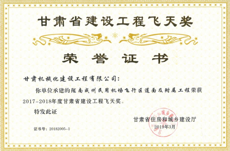 甘肅省住房和城鄉(xiāng)建設(shè)廳關(guān)于2017-2018年度(第二批)甘肅省建設(shè)工程飛天金獎(jiǎng)和飛天獎(jiǎng)入選名單公示已經(jīng)結(jié)束,我司共有兩個(gè)項(xiàng)目榮獲甘肅省建設(shè)工程飛天獎(jiǎng)。