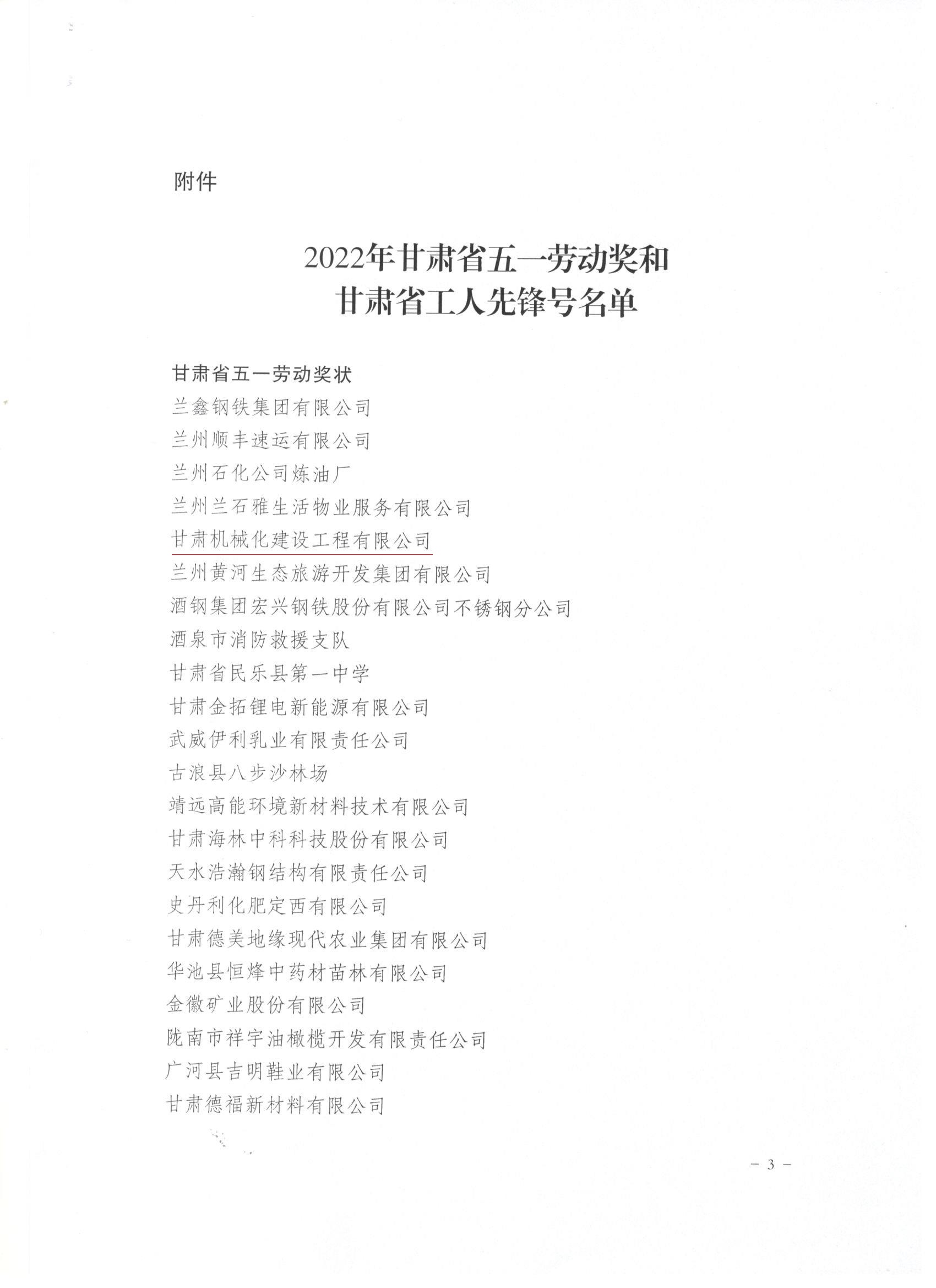 近日,甘肅省總工會(huì)發(fā)布了《關(guān)于表彰2022年甘肅省五一勞動(dòng)獎(jiǎng)和甘肅省工人先鋒號(hào)的決定》,我司被授予“甘肅省五一勞動(dòng)獎(jiǎng)”和“甘肅省工人先鋒號(hào)”。